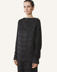 The loose, flowing cut of this top makes it perfect for comfortable everyday wear. Silver buttons at the neckline and cuffs add a touch of subtle elegance. . Details - Boat neck top - Loose, flowing fit - Round shoulders - Cuffed sleeves - Silver buttons at the neck and cuffs - Made in Portugal Size & fit - For more information, please see our size guide. Composition - Main fabric : 100% cotton woven - Lining : 100% cotton woven SKU: RW-TO0007-6198-H251034