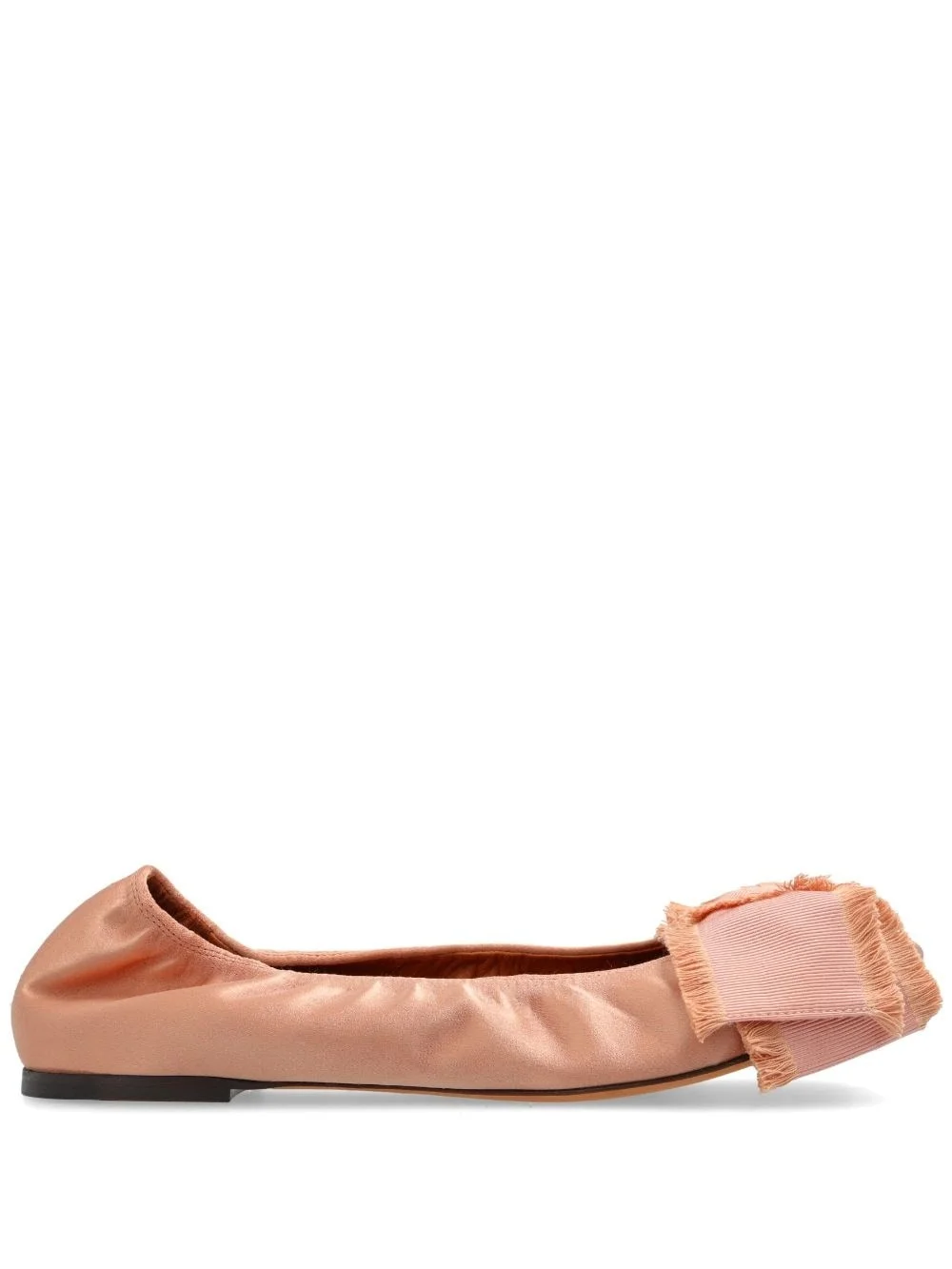 bow-detail ballerina shoes Highlights - Peach pink - Silk - Round toe - Bow detailing - Frayed detailing - Elasticated trim - Branded insole - Leather lining - Flat sole - Slip-on style Made in Italy Composition Silk 100%