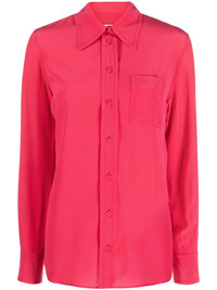 button-down silk shirt Lanvin injects a classic design with a punch of colour in this shirt. Crafted from fluid silk, the button-down silhouette is enlivened by its watermelon pink hue. Highlights - Watermelon pink - Silk - Pointed flat collar - Chest patch pocket - Front button fastening - Long sleeves - Buttoned cuffs - Straight hem Made in France Composition Silk 100% SIZE & FIT Model measurements Height 5 ft 10 in(1.78 m) Bust/Chest 33.46 in(85 cm) Hips 36.22 in(92 cm) Waist 23.22 in(59 cm) FittingInformation Designed to be unstructured, offering a loose fit throughout Made from a lightweight non-stretch fabric This piece fits true to size – take your usual size