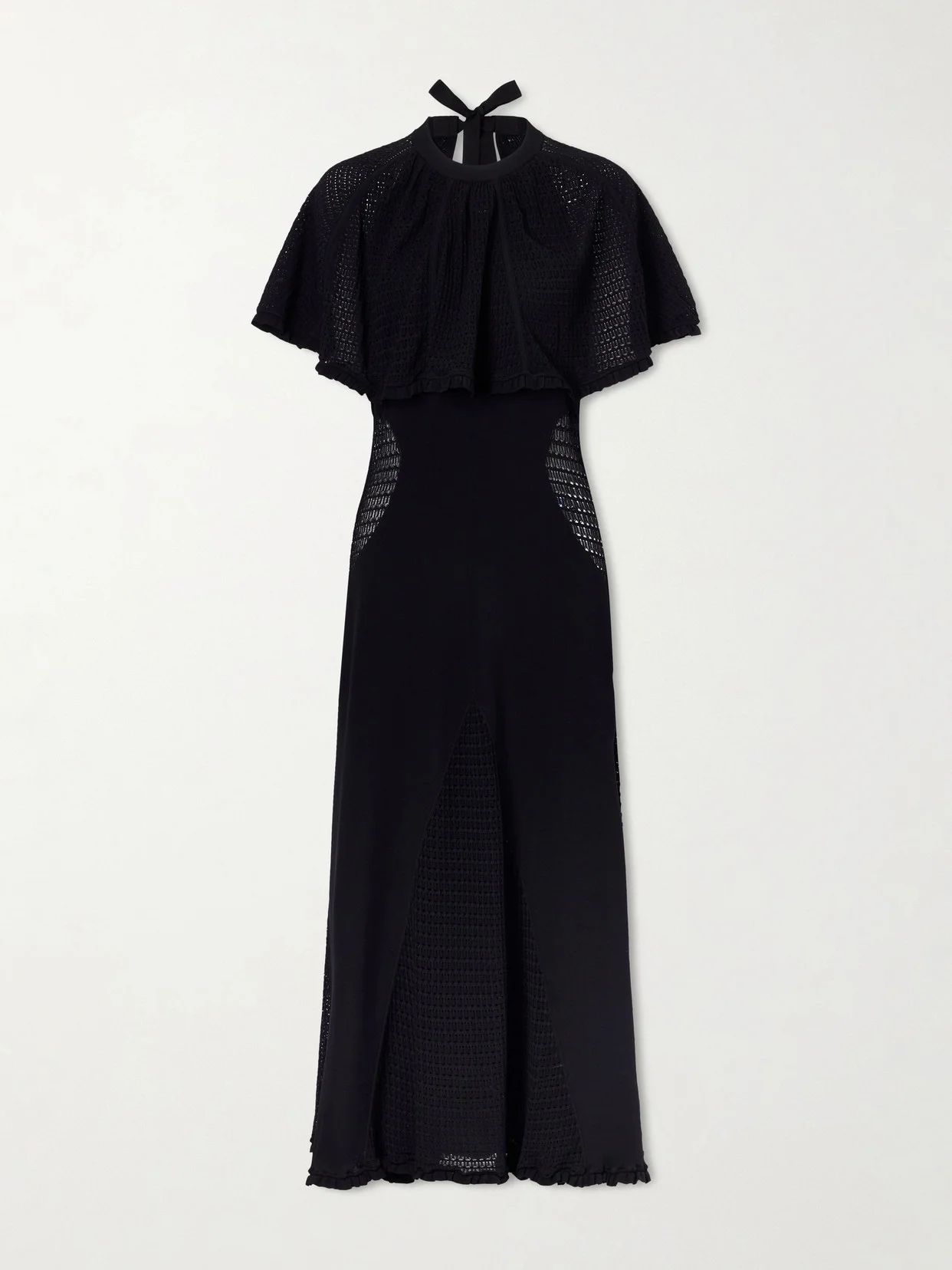 Cape-effect Open-knit And Jersey Midi Dress