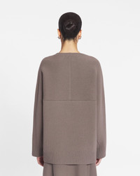 The sleeves of this sweater feature an opening that creates a cape effect. It also comes with a Cat pin, the iconic symbol of the House. This piece is part of the 22 Faubourg line, which brings together the essentials of the Lanvin wardrobe. Details - Cape sweater in wool and cashmere - Long sleeves - Made in Turkey Size & fit - For more information, please see our size guide. Composition - Main fabric : 70% wool knitted,30% cashmere knitted SKU: RW-PO0003-K400-A24394S