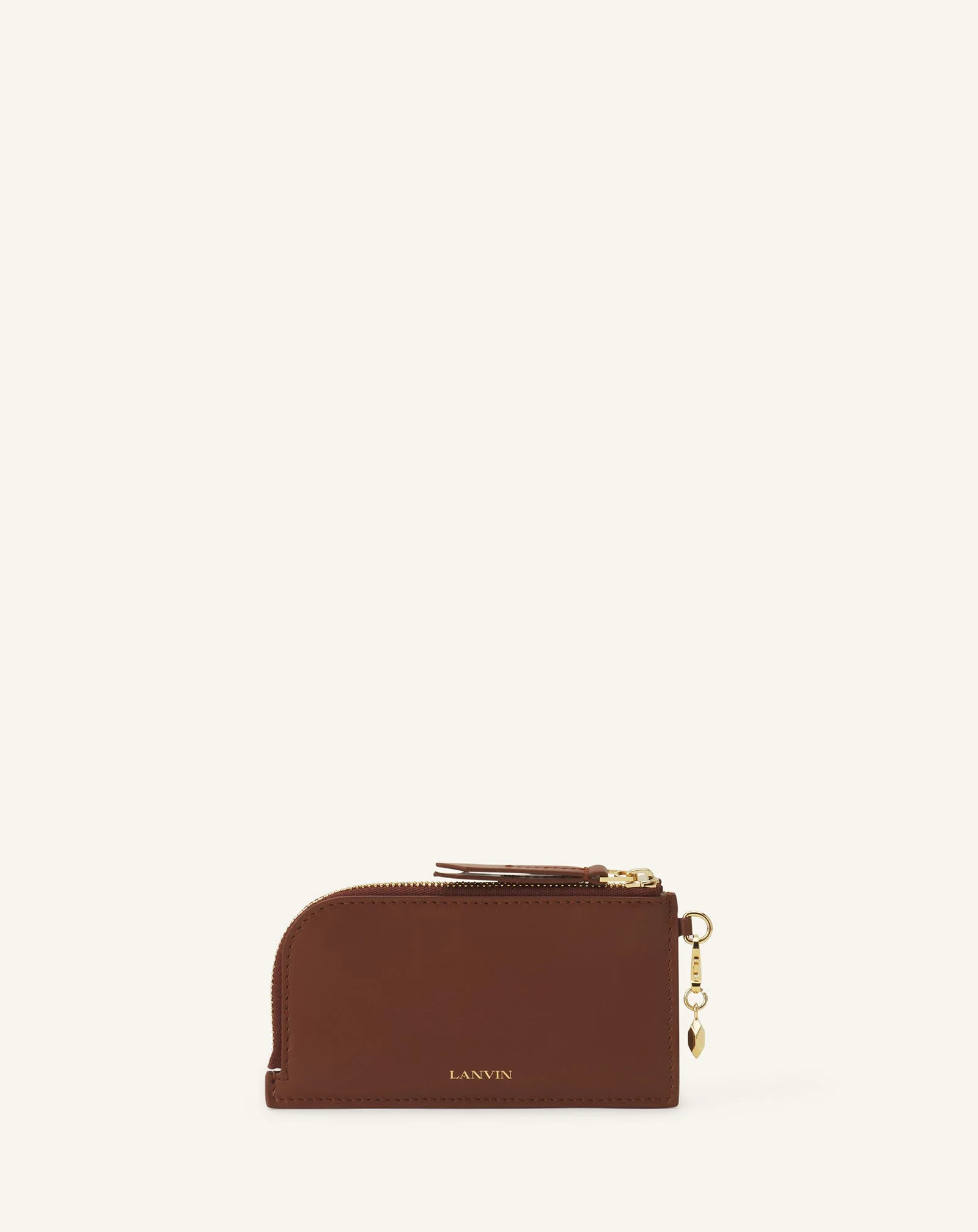 This Catch by Lanvin cardholder, with its refined, minimalist lines, takes up the House's chic, feminine codes, particularly with its jewel inspired by a 1936 model. Details - Catch by Lanvin leather card holder - Zipped pocket for coins - Five slots for cards on the back - Jewel charm - Lanvin logo embossed in front - Made in Italy Composition - Main fabric : 100% calf - bos taurus - Lining : 100% calf - bos taurus SKU: LW-SLSZCH-PIEN-H25657U