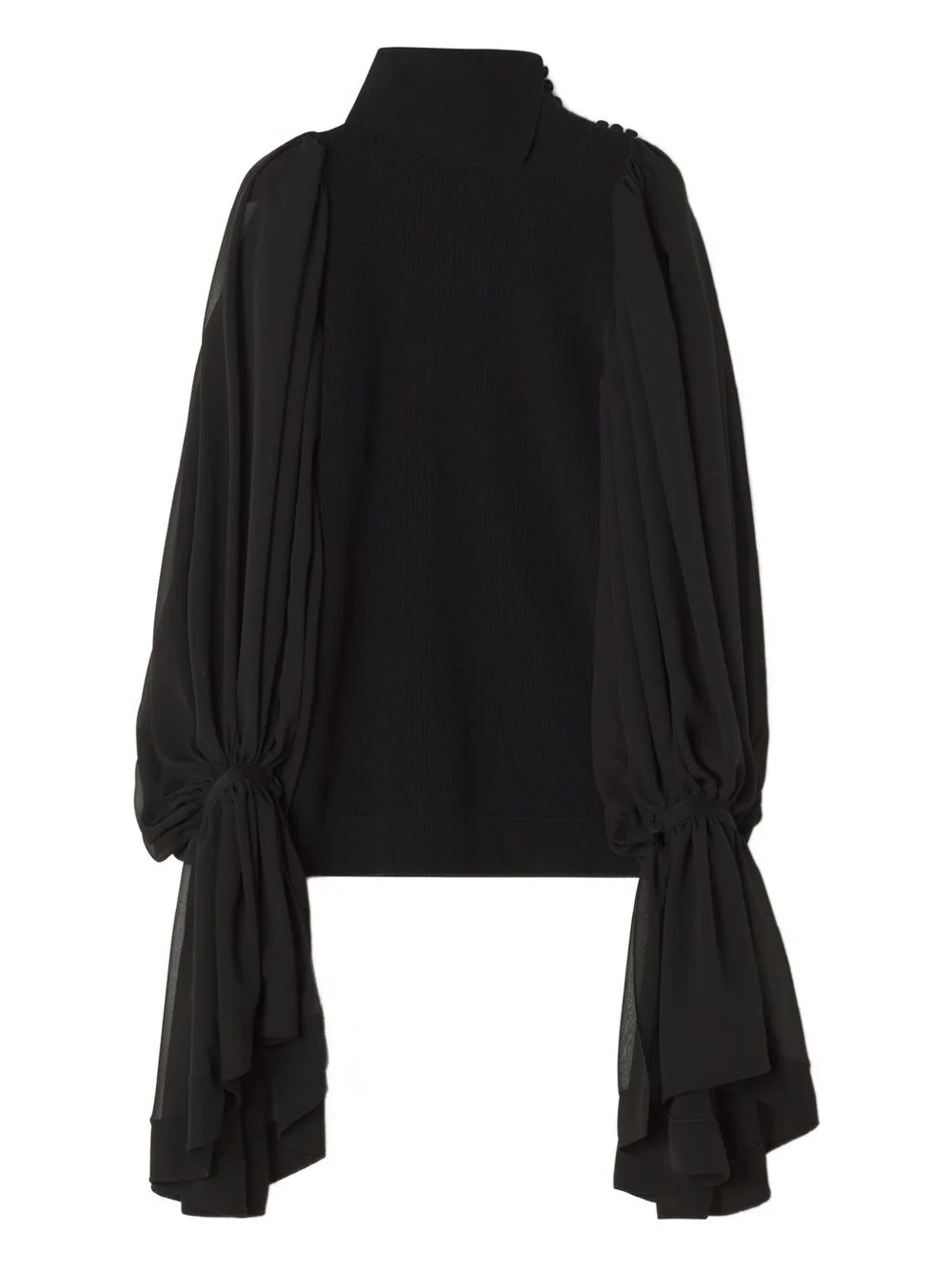 chiffon sleeve roll-neck top Highlights - Black - Roll neck - Chiffon sleeves - Gathered cuffs - Shoulder embellishment - Ribbed knit Made in Italy Composition Wool 80%, Cashmere 20% Washing instructions Read Manufacturer Guidelines
