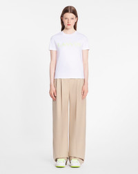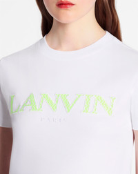 Details - Classic fit lanvin curb tee in mercerized cotton - Color: optic white - Short sleeve, classic fit, t-shirt with Lanvin - Paris logo in Curb lace on the front. - Made in portugal Composition - Main material: 100% cotton - Details: 100% polyester - Rib: 98% cotton, 2% elastane SKU: RW-TS0030-J207-P2301L