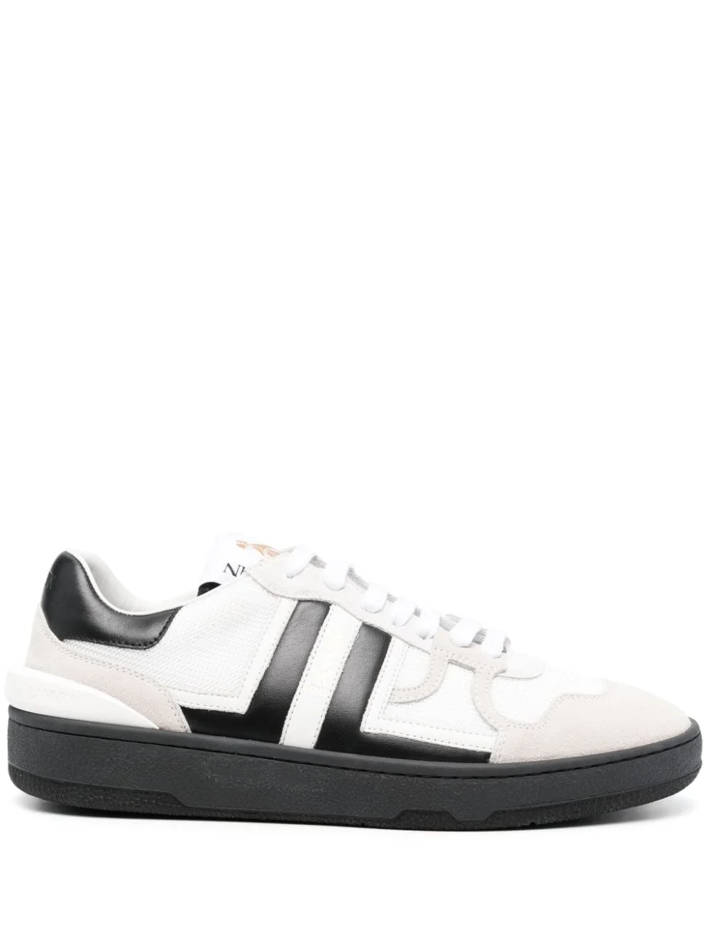 Clay mesh-detail leather sneakers A white upper crafted from smooth calf leather and suede punctuated with mesh panels for a tactile finish defines Lanvin's Claw sneakers. Made in Portugal, they sit atop a flat rubber sole whilst a signature Mother and Child logo adorns the tongue. Highlights - White/light grey/black - Calf leather/calf suede - Front lace-up fastening - Panelled design - Mesh detailing - Round toe - Signature mother and child motif - Contrasting heel counter - Flat rubber sole Imported Composition Leather 100% SIZE & FIT Measurement HEEL 1.18 in(3 cm) Sole height 0.98 in(2.5 cm)