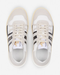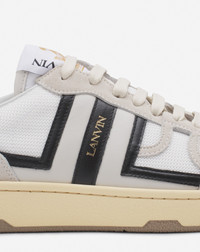 The Clay sneaker revisits the codes of the low-top tennis shoe, with this model made with leather and mesh. The graphic design features the "JL" logo in contrasting colors on the side of the shoe. This sporty, contemporary shoe is perfect for everyday wear. Details - Clay leather and mesh sneakers - Almond toe - JL logo on the sides and Lanvin logo - Label with the Lanvin logo on the tongue - Lace-up closure - Exclusive honey-colored rubber sole - Made in Portugal Size & fit - This style fits true to size, you may take your usual size. - The size displayed corresponds to a French size SKU: FW-SKDK00-NASH-A20B10435