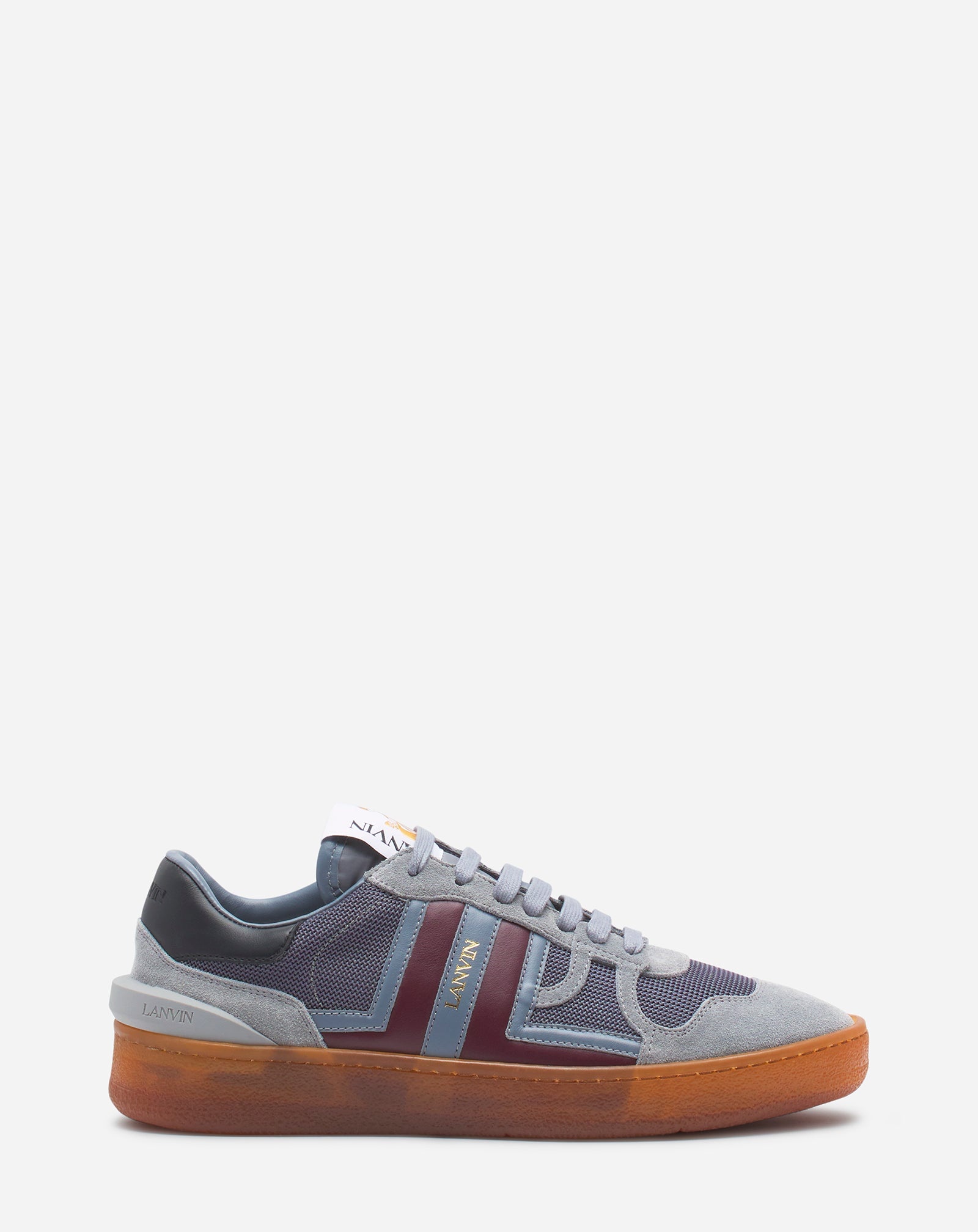The Clay sneaker revisits the codes of the 80s tennis shoe and celebrates the 100th anniversary of the creation of the Lanvin Sports line. The design is graphic, and comes in leather and mesh, with the contrasting JL logo on both sides of the shoe. This sporty, contemporary shoe is perfect for everyday wear. Details - Clay low-top sneakers in leather and mesh - Almond toe - With laces - JL logo on the sides and Lanvin logo - Tongue with the Mother and Daughter label - Exclusive honey-colored rubber sole - Made in Portugal Size & fit - The size displayed corresponds to a French size - This style fits true to size, you may take your usual size. SKU: FW-SKDK00-NAST-A24123935