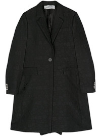 cloque midi coat Highlights - Black - Cloque effect - Notched lapels - Shoulder pads - Long sleeves - Buttoned cuffs - Chest welt pocket - Two side flap pockets - Central rear vent - Internal logo tag - Internal jetted pocket - Full lining - Mid-length - Straight hem - Front button fastening Made in Italy Composition Outer: Polyester 100%, zamac 100%, Buffalo Horn 100%, Polyamide 89% Lining: Viscose 100%, Cotton 100%