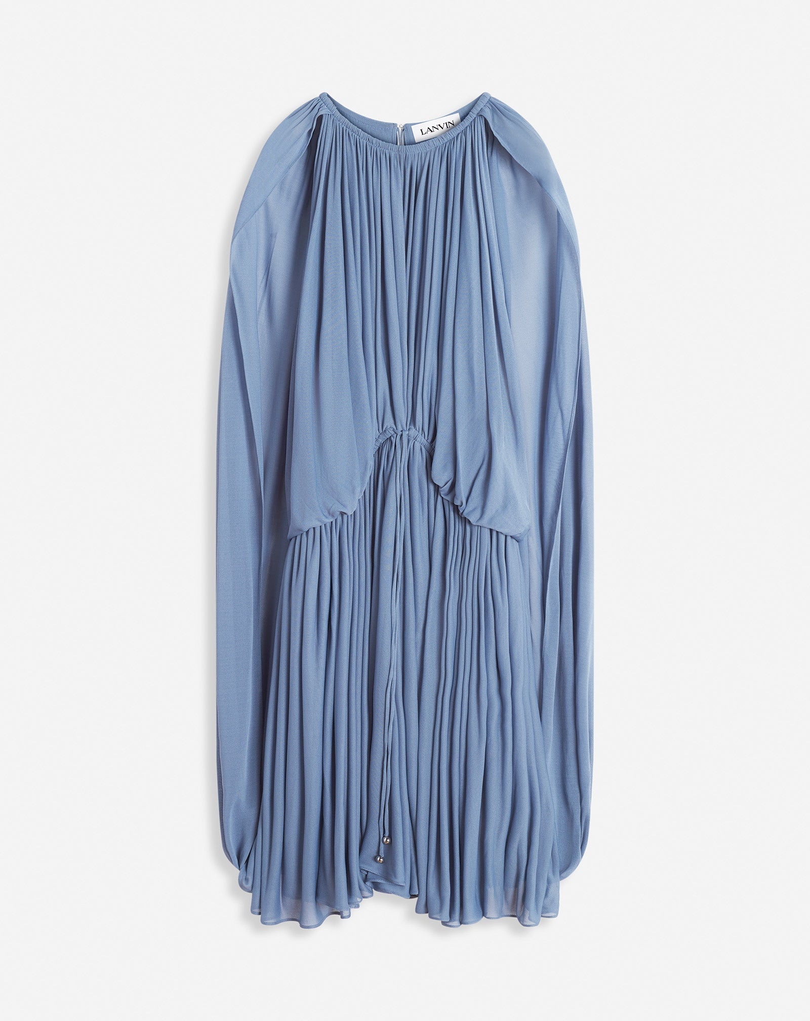 The elegant drape of this dress creates a light, feminine outfit. The fabric is designed to imitate tulle and enhance the fluidity of the pleats. Details - Boetie dress in silk and viscose - Round neck with draped gathers - Slip-on - Drawstring - Made in Portugal Size & fit - This style fits true to size, take your normal size - For more information, please see our size guide. Composition - Main fabric : 80% viscose knitted,20% silk knitted SKU: RW-DR0004-6033-E2517042