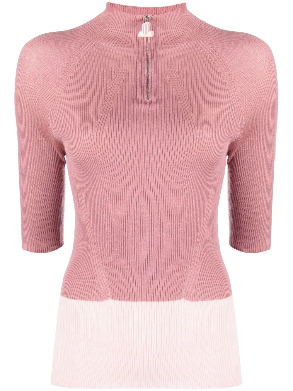 colour-block knit top Lanvin flexes its sartorial skills in this colour-block knit top. Imagined in a tonal pink design, the piece is complete with the JL logo motif used as a graphic zip-pull. Made in Italy Composition Cashmere 70%, Silk 30% SIZE & FIT Model measurements Height 5 ft 10 in(1.77 m) Bust/Chest 32.28 in(82 cm) Hips 35.03 in(89 cm) Waist 25.19 in(64 cm) FittingInformation This piece fits true to size. We recommend you get your regular size Cut for a slim fit Made with a mid-weight fabric Washing instructions Dry Clean Only