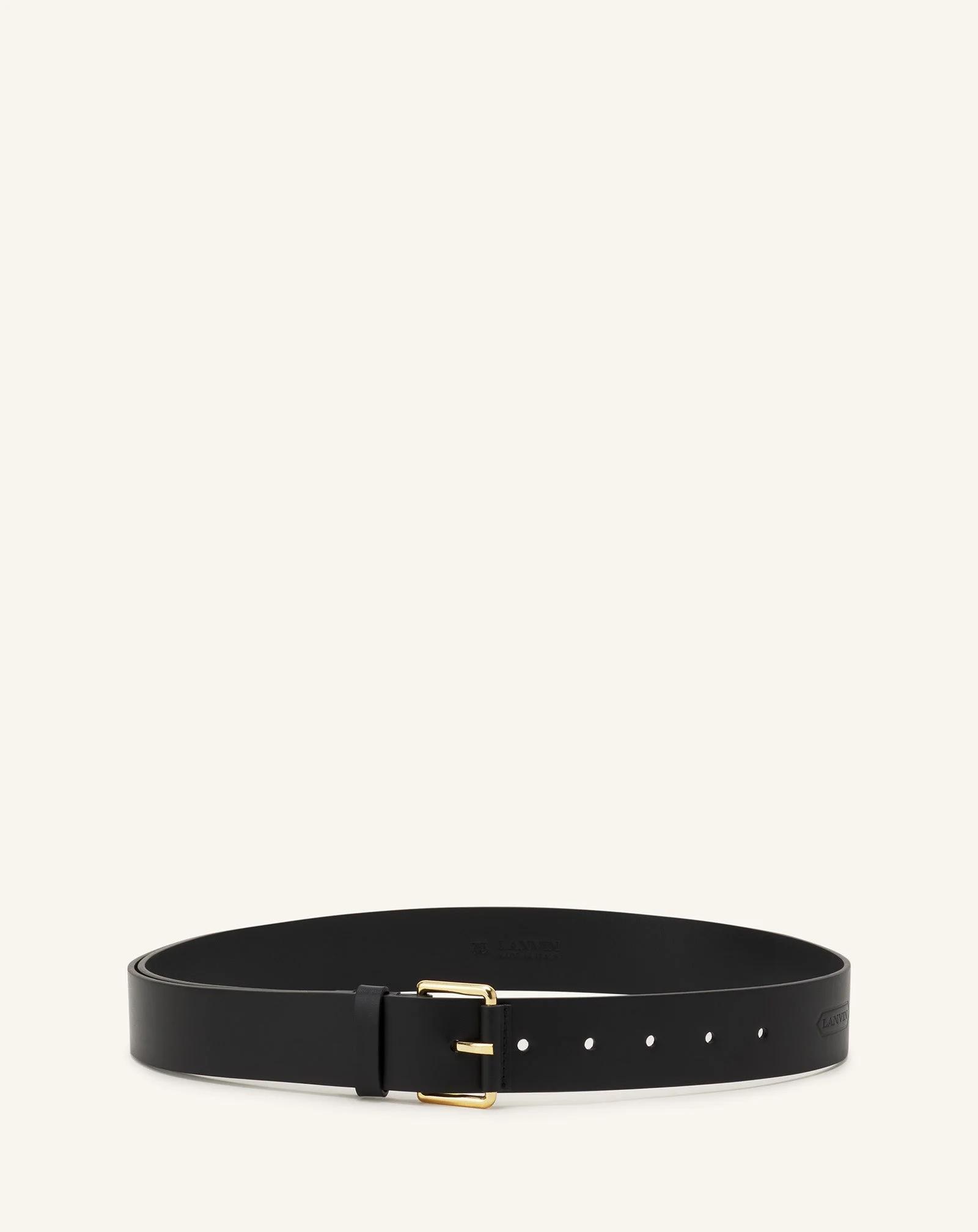 This raw-edged leather belt features a metal buckle engraved with the Lanvin logo. It is the perfect accessory for an elegant daytime or evening outfit. Details - Compagnon large leather belt - Adjustable size - Raw edges - Matte leather loop - Metal buckle - Made in Italy Composition - Main fabric : 100% calf - bos taurus - Lining : 100% calf - bos taurus SKU: AW-BECCB5-VEBF-H251075