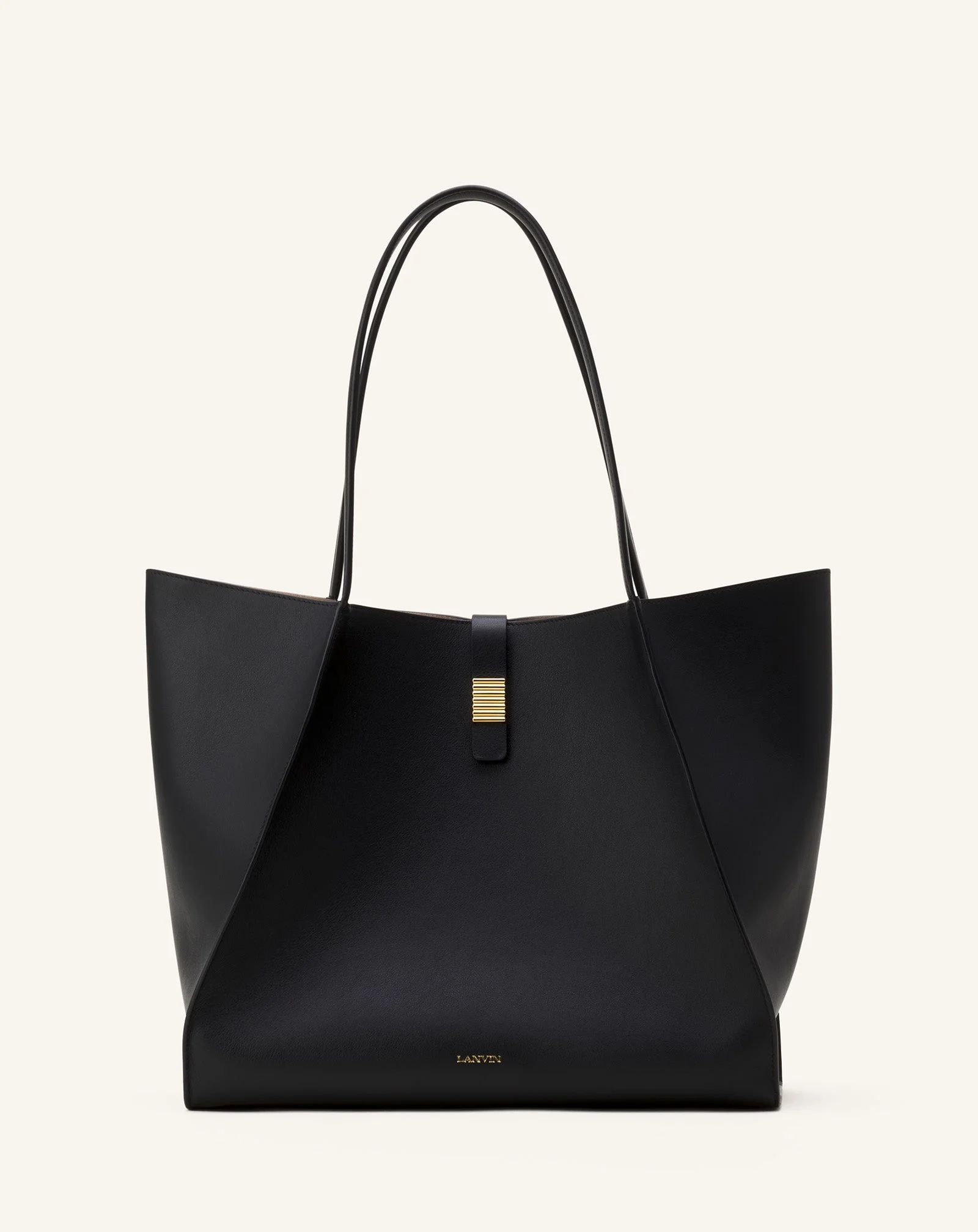 This collection features a new version of the Concerto Arpege tote bag in patent leather. This modern and practical day bag, which can be carried by hand or over your shoulder, embodies the House's codes. The Arpege clasp draws inspiration from Jeanne Lanvin's perfume created in 1927, and the logo is featured on the handle and metal details. It goes perfectly with both chic and casual outfits. Details - Concerto Arpege patent leather tote bag - Arpege magnetic jewel clasp - Lanvin logo on the front of the bag - Five metal feet - Made in Italy Composition - Main fabric : 100% calf - bos taurus - Lining : 100% lamb ovis aries SKU: LW-BGPT01-TOPS-H2510U