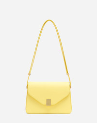 Concerto is a new contemporary and refined day bag. Its magnetic diamond-point clasp derives its inspiration from the geometric shape of an iconic LANVIN dress of the 1934 Fall/Winter collection. Details - Matte leather Concerto bag SM - Color: Corn - Made in Italy Size and fit - L x H x W: 24 x 16 x 10 cm (9.4 x 6.3 x 4 in.) - Carried in the hand, on the shoulder or crossbody - Magnetic diamond-point clasp - Palladium vibration-finish electroplating - Adjustable strap: 24 cm (9.4 in.) short, 50 cm (19.7 in.) long - 1 main compartment, 2 side pockets, a back pocket and an inside zipped pocket - Strap adjustable thanks to two strap loops - LANVIN logo etched on the two adjustment loops on the sides Composition - Main material: calfskin - Material 2: brass - Material 3: zamak - Lining: lambskin Cleaning and care - Gently rub the leather with a damp cloth. - Wipe gently with a soft, dry cloth. - Store in a dry, dark place in its original packaging. SKU: LW-BGSRS1-TOPS-E23810U