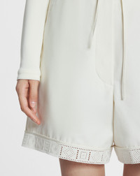 These shorts are part of the Lanvin Summer capsule collection. The light cotton and comfortable fit make them ideal for casual chic daywear. Details - Cotton peplum shorts - Casual short fit - One pocket in the back - Slip-on, drawstring waist - Cotton lining - Made in Italy Size & fit - This style fits true to size, take your normal size - For more information, please see our size guide. Composition - Main fabric : 100% cotton woven - Lining : 100% cotton knitted SKU: RW-TR9104-6031-P2500140