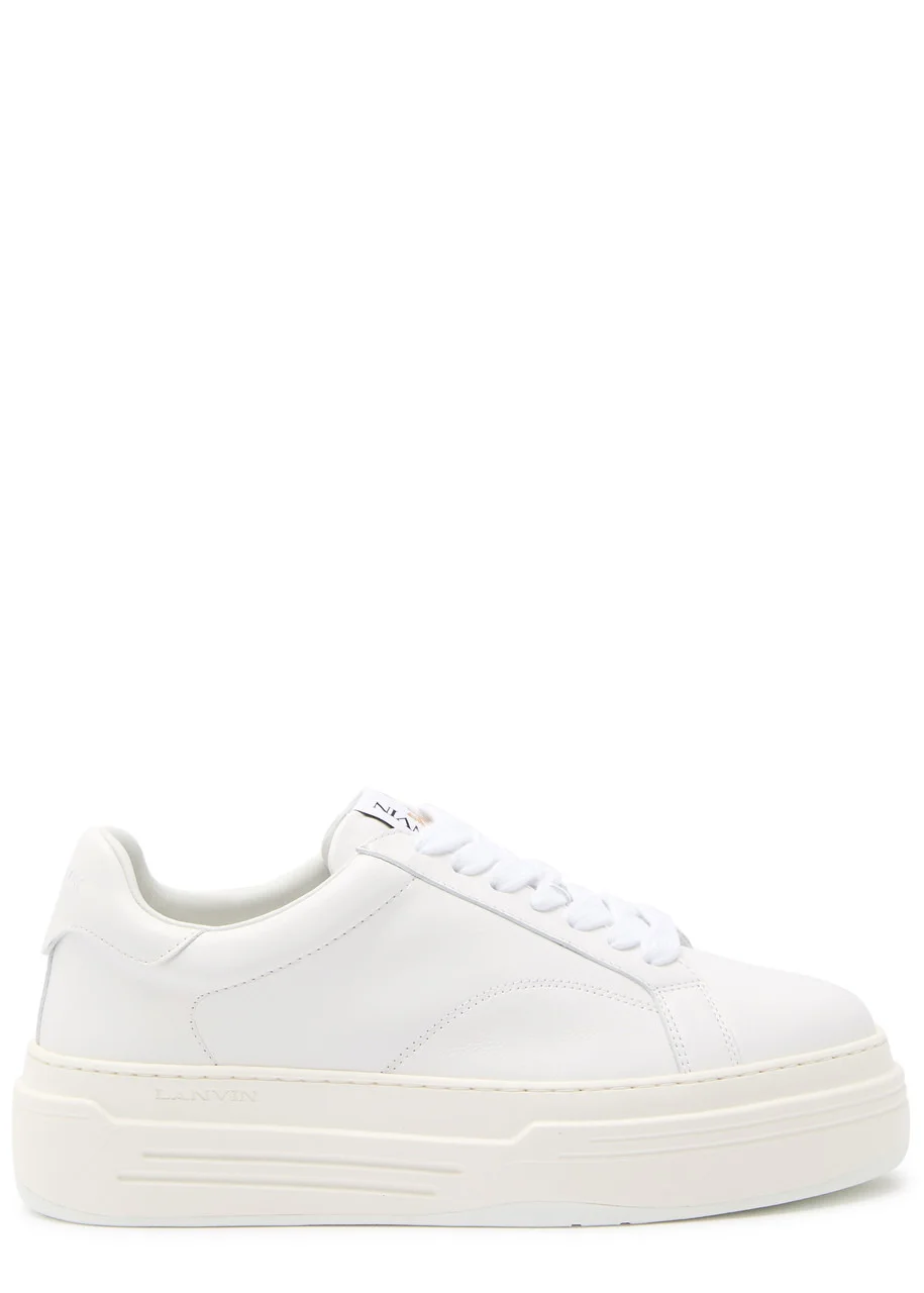 INFO & CARE - Lanvin leather sneakers - Flatform measures approximately 1.5 inches/ 40mm - Designer plaque at tongue, logo-embroidered heel panel, debossed logo at sculpted rubber midsole, rubber sole, round toe - Lace-up front SIZE & FIT - Only available in full sizes, go up to the nearest whole size if you take a half size
