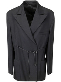 drawstring waist blazer Highlights - Black - Wool - Off-centre front button fastening - Peak lapels - Long sleeves - Buttoned cuffs - Chest welt pocket - Drawstring waist - Two front patch pockets - English rear vents - Silk lining - Straight hem Made in Italy Composition Outer: Wool 100%, Buffalo Horn 100%, Polyester 100% Lining: Silk 100%