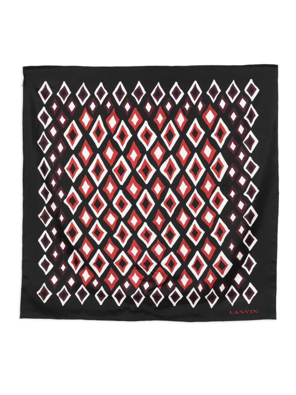 diamond-pattern silk scarf Highlights - Black - Red diamond pattern - White diamond pattern - Silk - Geometric pattern - Repeating motif - Square shape Imported Composition Silk 100%