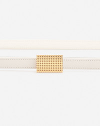 New this season, the Concerto double belt with a diamond-point clasp inspired by the Concerto bag clasp Details - Double Concerto leather belt - Colors: Latte - Made in Italy Size and fit - Diamond-point clasp - Gold vibration-finish electroplating - Height: 1.4 cm Composition - Main material: calfskin - Material 2: brass Cleaning and care - Gently rub the leather with a damp cloth and a dab of suitable moisturizer. - Wipe gently with a soft, dry cloth. Using a clean, soft cloth, you can gently clean the jewelry, avoiding using cosmetic, chemical or abrasive products. - Store in a dry, dark place in its original packaging. SKU: AW-BEMB0Q-GAN2-P23630100