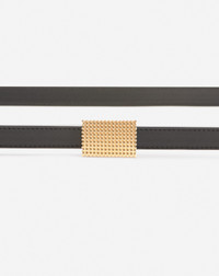 New this season, the Concerto double belt with a diamond-point clasp inspired by the Concerto bag clasp Details - Double Concerto leather belt - Colors: Black - Made in Italy Size and fit - Diamond-point clasp - Gold vibration-finish electroplating - Height: 1.4 cm Composition - Main material: calfskin - Material 2: brass Cleaning and care - Gently rub the leather with a damp cloth and a dab of suitable moisturizer. - Wipe gently with a soft, dry cloth. Using a clean, soft cloth, you can gently clean the jewelry, avoiding using cosmetic, chemical or abrasive products. - Store in a dry, dark place in its original packaging. SKU: AW-BEMB0Q-GAN2-P231070