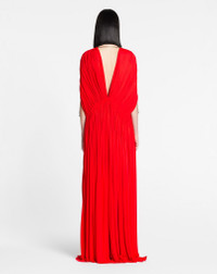 Details - Draped maxi dress with short sleeves and metal tubular chain with terminals decorated with Arpège beads - Color : poppy - Side zipper - Made in France Size and fit - The model is 1.77 m tall and wears a size 36 (US 4) Composition - Main material: 100% viscose Cleaning and care - Have cleaned by a luxury dry cleaning specialist only - Gently iron on the reverse side - Very delicate care RW-DR0056-5295-E2237