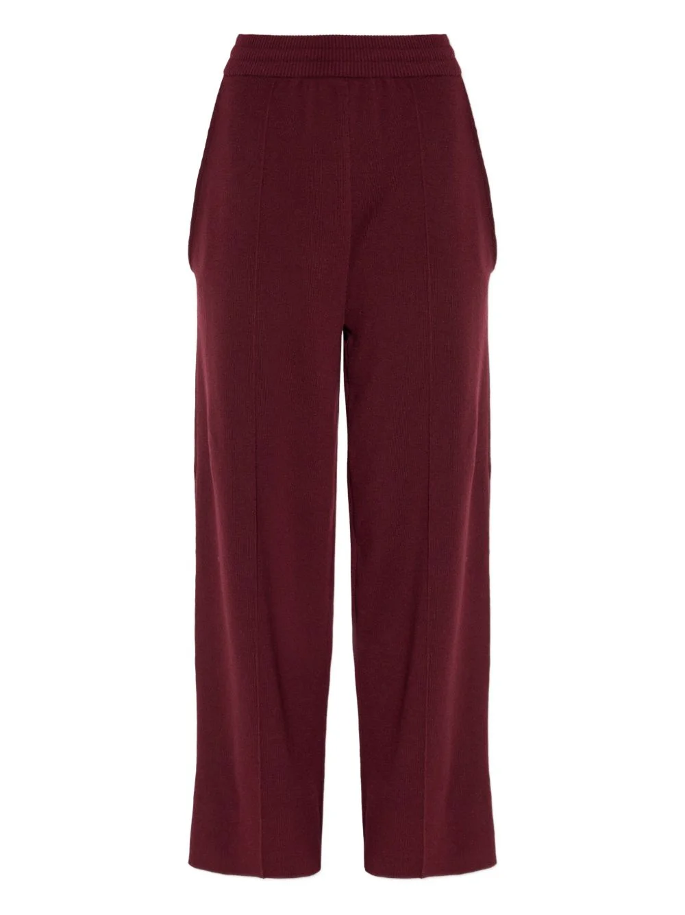 elasticated-waistband wool-blend trousers Highlights - Burgundy - Elasticated waistband - Side pockets - Front seam detail - Wool blend Made in Italy Composition Wool 79%, Cashmere 19%, Elastane 1%, Polyamide 1% Washing instructions Read Manufacturer Guidelines