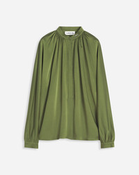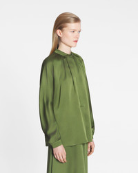 This timeless blouse is part of the 22 Faubourg line of Lanvin essentials. It features a cat pin, the iconic symbol of the House, which is placed on the collar and can be removed according to your preferences. Details - Flared blouse with long satin sleeves - Tapered cuffs - Single-breasted buttoned front - Made in Portugal Size & fit - This is a relaxed fit, size down if you are between two sizes - For more information, please see our size guide. Composition - Main fabric : 70% cellulose acetate woven,30% viscose woven SKU: RW-TO0014-3421-A2441136