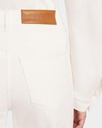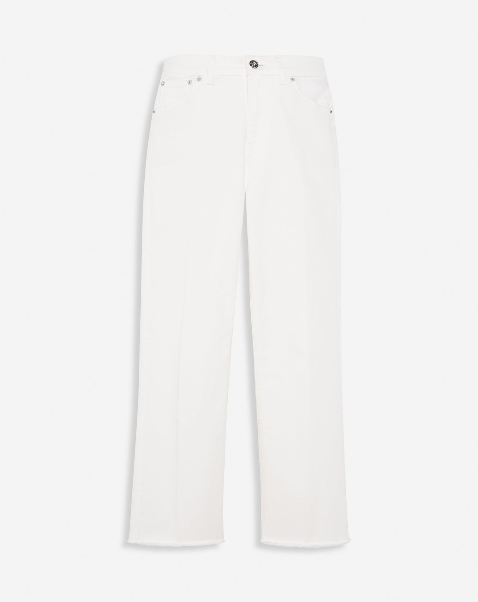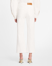 Details - Denim flared-leg pants - High waist - Tone-on-tone topstitching - Leather jacron on the back - Color: optical white - Made in Italy Size and fit - The model is 189 cm / 6'2.5" tall - She wears a size 36 Composition - Main material: 98% cotton, 2% elastane - Lining: 100% cotton Cleaning and care - Turn inside out before cleaning - Wash separately - Gently iron on the reverse side SKU: RW-TR0008-D011-A230134