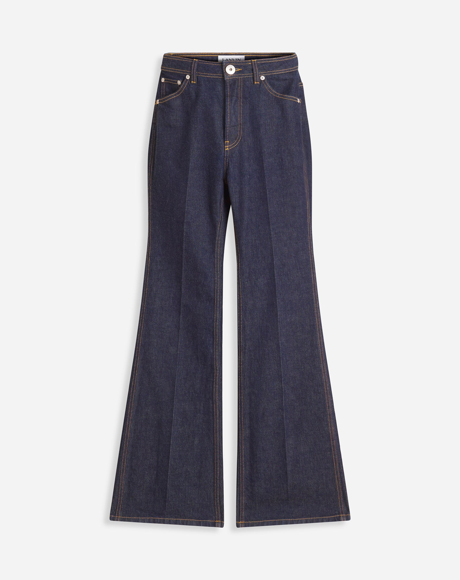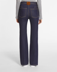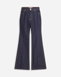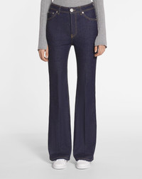 These pants are made from Japanese denim that has been processed to achieve a vintage effect, the perfect match for the flared lines. The leg is marked with a central crease for a casual chic style. Details - Flared denim pants - Fastening with a metal zipper and button - Patch pockets on the back - Made in Italy Size & fit - This style fits true to size, take your normal size - For more information, please see our size guide. Composition - Main fabric : 100% cotton - Lining : 100% cotton knitted SKU: RW-TR0079-D021-H242936