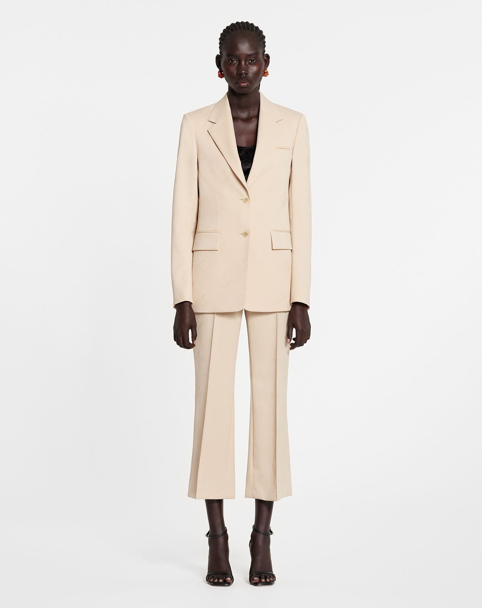 Details - Fitted, ankle-length, floral jacquard pants with a flared hem - Permanent topstitched pleats and slanted pockets - Color: sand - Made in Italy Size and fit - The model is 177 cm / 5'9.5" tall - She wears a size 36 Composition - Main material: 100% virgin wool Cleaning and care - Contains non-textile parts of animal origin - Have cleaned by a luxury dry cleaning specialist only SKU: RW-TR0014-5652-E2308136