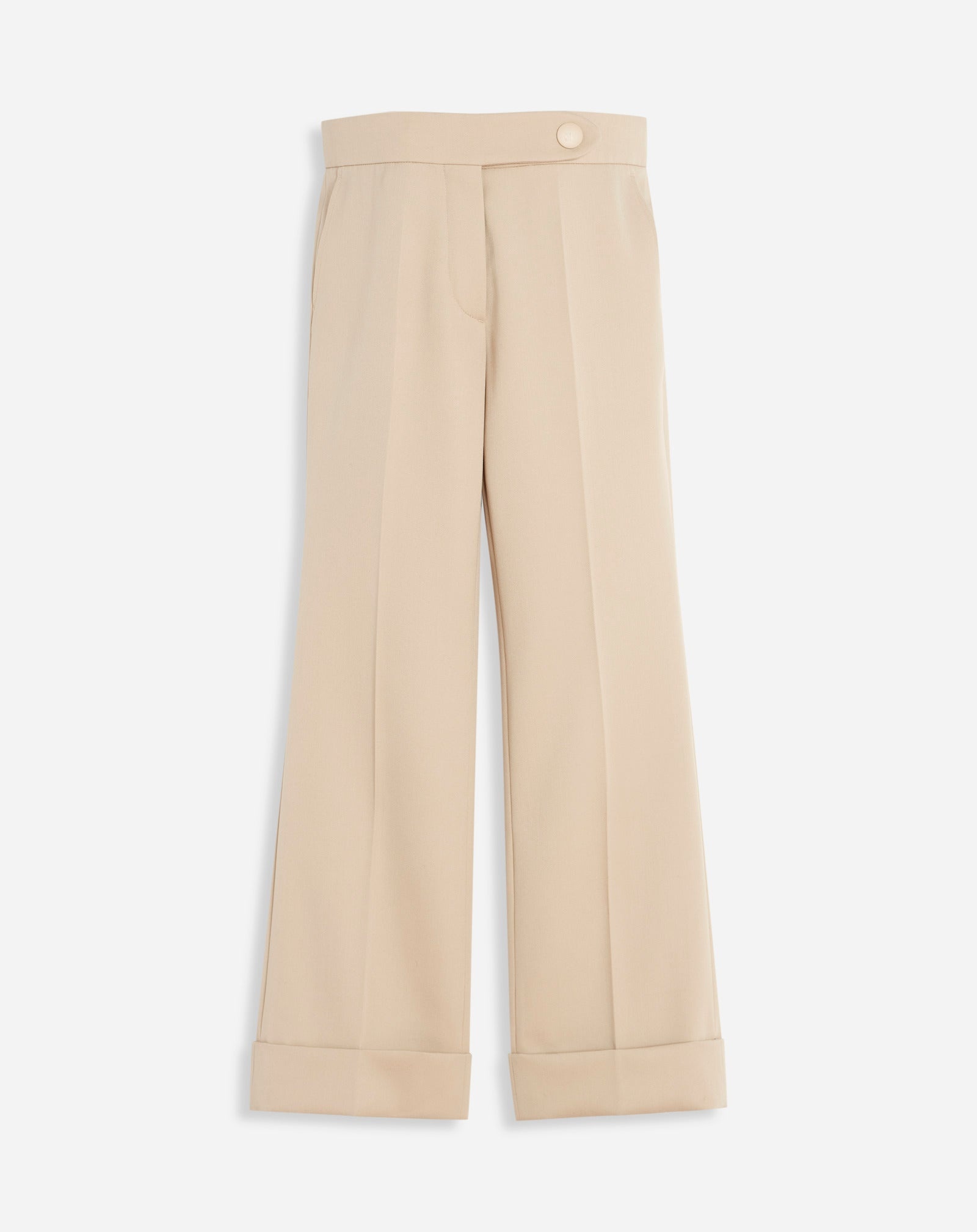 Details - Flared flat-front pants - Color: light beige - Made in Italy Composition - Main material: 100% wool - Lining: 100% cotton Cleaning and care - Have cleaned by a luxury dry cleaning specialist only - Gently iron on the reverse side - Contains non-textile parts of animal origin - Very delicate care SKU: RW-TR0016-4885-A220734