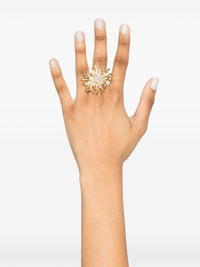 flower-detailed ring Highlights - Gold-tone - Crystal embellishment - Engraved logo Made in Italy SIZE & FIT Model measurements Height 5 ft 10 in(1.78 m) Bust/Chest 32.67 in(83 cm) Hips 35.43 in(90 cm) Waist 23.22 in(59 cm) Measurement Band Width 0.07 in(0.2 cm) CIRCUMFERENCE 20.07 in(51 cm) Feature Length 1.41 in(3.6 cm) Feature Width 1.49 in(3.8 cm)