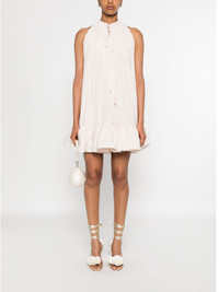 frill-neck ruffled mini dress Highlights - Light pink - Ruffled hem - Frilled high neck - Self-tie fastening - Sleeveless Imported Composition Polyester 100% SIZE & FIT Model measurements Height 5 ft 10 in(1.77 m) Bust/Chest 33.07 in(84 cm) Hips 37 in(94 cm) Waist 24.8 in(63 cm) FittingInformation Designed to be unstructured, offering a loose fit throughout Made from a midweight non-stretch fabric Washing instructions Specialist Cleaning