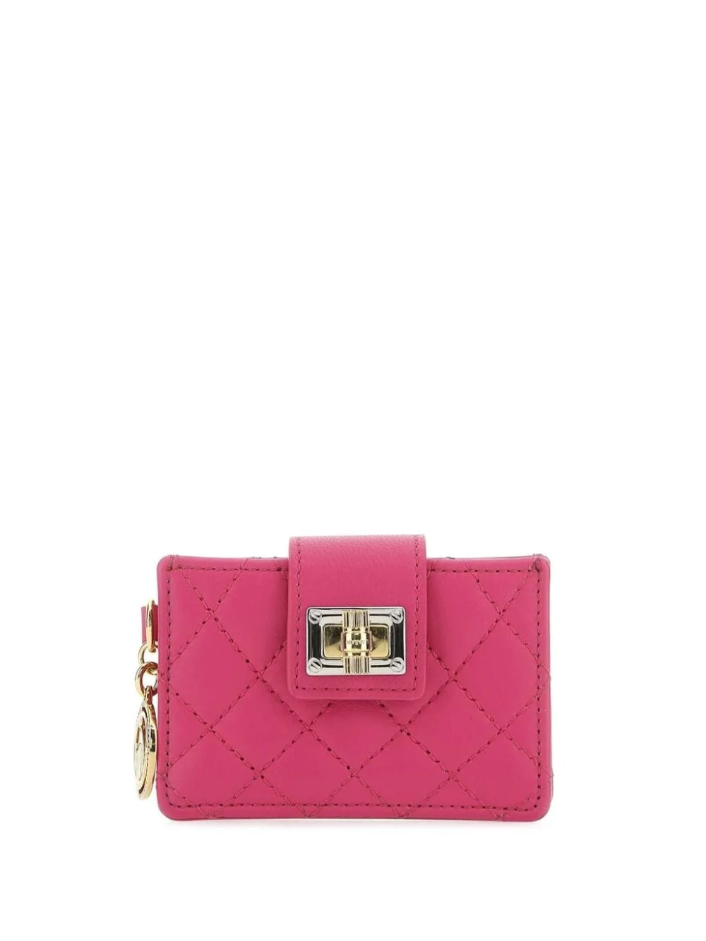 leather card holder Highlights - Fuchsia pink - Lambskin - Diamond quilting - Logo charm - Strap closure and twist-lock fastening - Gold-tone hardware - Internal card slots Made in Italy Composition Outer: Lambskin 100%