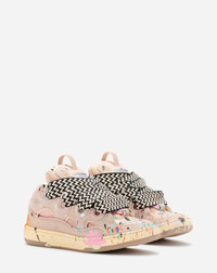 The Curb is a sneaker inspired by the 90s, with a confident design and exaggerated dimensions. Made in nappa calfskin, suede and mesh, this elaborately constructed shoe stands out for its extraordinary comfort thanks to the rounded shape, padded tongue, and curved metallic eyelets. Details - Gallery Dept. x Lanvin Curb sneakers, in hand-painted calfskin leather, personalized by artist Josué Thomas - Colors: pale pink, multicolored - Quilted tongue with Lanvin label and embossed Mother and Child logo - Double waxed and herringbone laces - Made in Portugal Composition - Main material: mesh - Secondary material: calfskin - Third material: nubuck - Sole: rubber Cleaning and care - Fragile motif. Do not use products for cleaning. Avoid contact with water. - Store in a dry, dark place in its original packaging. SKU: FW-SKDK02-DRGD-P22B5S036