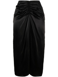 gathered-waist midi skirt France's oldest couture house, Lanvin is renowned for its 'ageless elegance' with a modern twist, as seen with this satin midi skirt. The classic silhouette is elevated with gathered detailing at the waist, enhancing the fit of the garment. Highlights - Black - Satin finish - Gathered detailing - High-waisted - Rear slit - Mid-length Imported Composition Viscose 100% SIZE & FIT Model measurements Height 5 ft 10 in(1.77 m) Bust/Chest 31.49 in(80 cm) Hips 36.22 in(92 cm) Waist 22.44 in(57 cm) Washing instructions Dry Clean Only