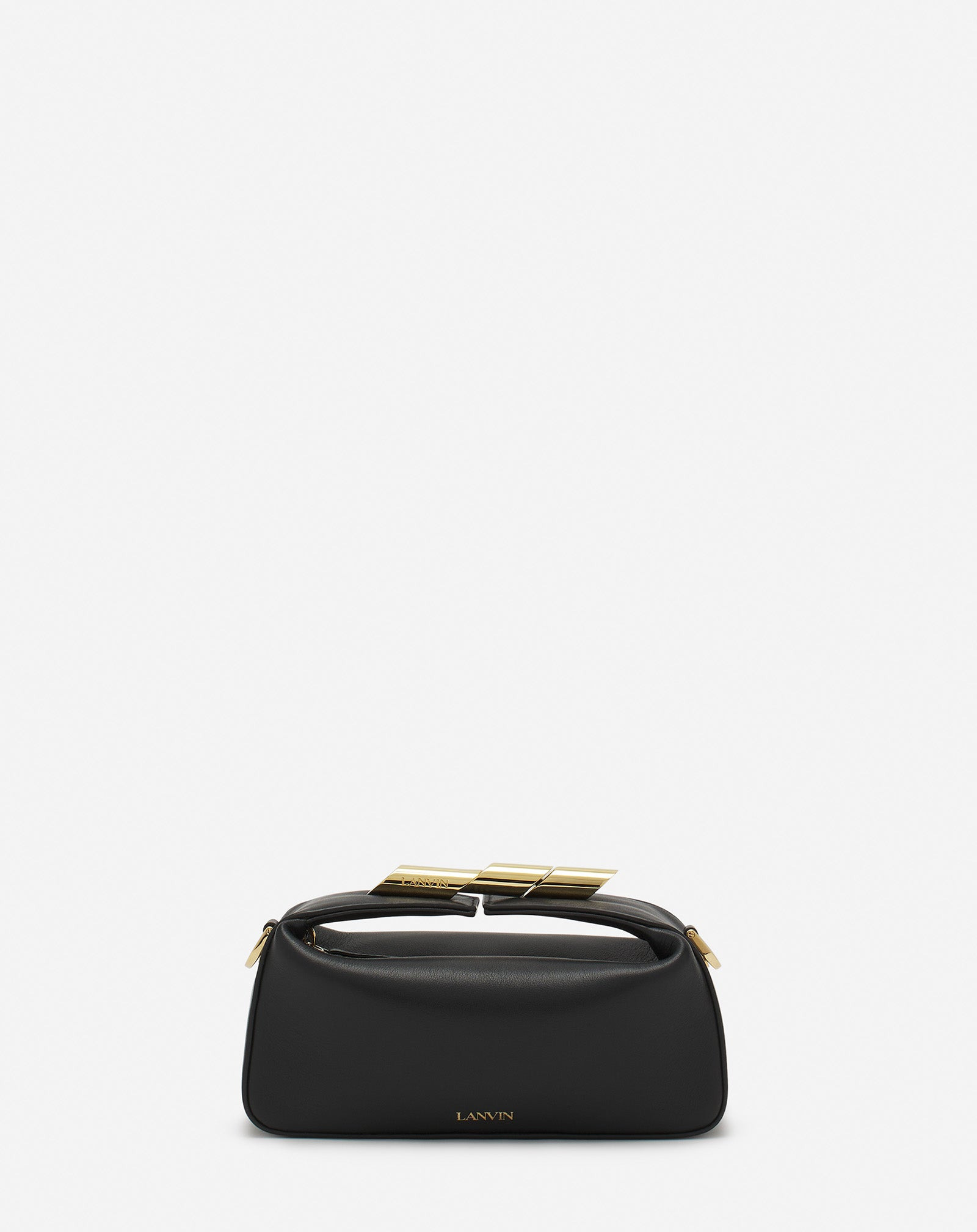 Soft and easy to carry, this Haute Sequence bag is designed to elegantly round off an evening outfit. The cylindrical clasp is a reference to the Haute Sequence jewelry line, whose refined, minimalist shapes are inspired by the musical notes on a score and which was created as a tribute to Jeanne Lanvin's daughter. Details - Haute Sequence leather clutch bag - Adjustable, removable leather shoulder strap - Suede leather lining with an interior patch pocket - Jewel clasp - Gold-finish metal jewelry - Made in Italy Composition - Main fabric : 100% calf - bos taurus - Lining : 100% calf - bos taurus SKU: LW-BGBE01-PIEN-P2510U