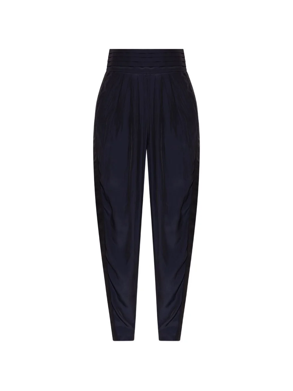 high-waisted tapered trousers Highlights - Black - High-waisted - Pleated waistband - Side stripe detailing - Tapered leg Imported Composition Polyester 100% Washing instructions Read Manufacturer Guidelines