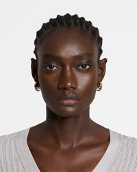 Drawing their inspiration from the 70s, these earrings embody one of the House's signatures, Contrast. They combine high-gloss metals with the transparency of Plexiglas. Details - Fargo large hoop earrings in brass - Bi-material resin with crystals and metal - Push button ring clasp - Made in Italy Size & fit - Dimensions : 2.3 (L) x 1 (l) x 2.5 (h) cm / 0.9 (L) x 0.4 (l) x 1.0 (h) in Composition - Main fabric : 100% brass SKU: AW-CJFBO1-REFG-E25M1S0U