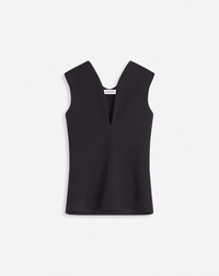 This top very elegantly structures the silhouette. The fabric is easy to care for and crease-resistant, in addition to being very comfortable for everyday wear. Details - Jersey top with a plunging neckline - Tailored fit - Plunging V-neck - Slip-on - Made in Portugal Size & fit - This style fits true to size, take your normal size - For more information, please see our size guide. Composition - Main fabric : 67% viscose knitted,28% polyamide knitted,5% elastane knitted - Lining : 71% cellulose acetate woven,29% silk woven SKU: RW-TO0006-6109-E251042