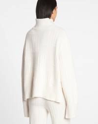 Details - Soft cashmere high neck sweater with giant JL3D jacquard pattern - Pair it with the matching wide-leg cashmere pants for a luxurious yet casual silhouette - Color: ecru - Made in Italy Composition - Main material: 100% cashmere Cleaning and care - Have cleaned by a luxury dry cleaning specialist only - Gently iron on the reverse side - Turn inside out before cleaning - Very delicate care SKU: RW-PO0005-K501-A2202L