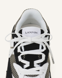 This JLA runner sneaker draws its inspiration in from the running shoes of the 70s, with a name referring to the healthy lifestyle of Los Angeles. The design of the upper of the shoe pays tribute to one of the first logos designed by Jeanne Lanvin for the House's historic boutique. Details - JLA mesh sneakers - Almond toe - Lace fastening - Lightweight, flexible EVA outsole with a technical TPU instep reinforcement for stability - Lanvin logo on the heel pull tab and embroidered on the side - Embossed Lanvin logo on the insole - Made in China Composition - Outer main material : ,90% cow bos taurus,,10% pet - Lining : 100% pet SKU: FU-SKAK02-NASU-E25104037