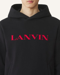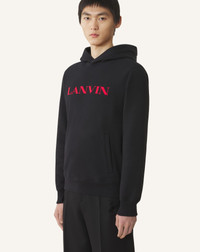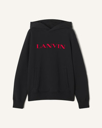 The Lanvin logo on the front of this hoodie adds a touch of timeless elegance to this men's wardrobe essential. The comfortable fit and soft fabric make it a stylish piece to pair with a casual outfit. Details - Lanvin embroidered cotton hoodie - Straight fit - Drawstring hood - Ribbed cuffs - Side welt pockets - Lanvin embroidered logo in contrasting cotton gabardine - Made in Portugal Size & fit - This style fits true to size, take your normal size - For more information, please see our size guide. Composition - Main fabric : 100% cotton knitted,100% polyester knitted SKU: RM-HO0005-F300-H2510XS