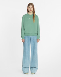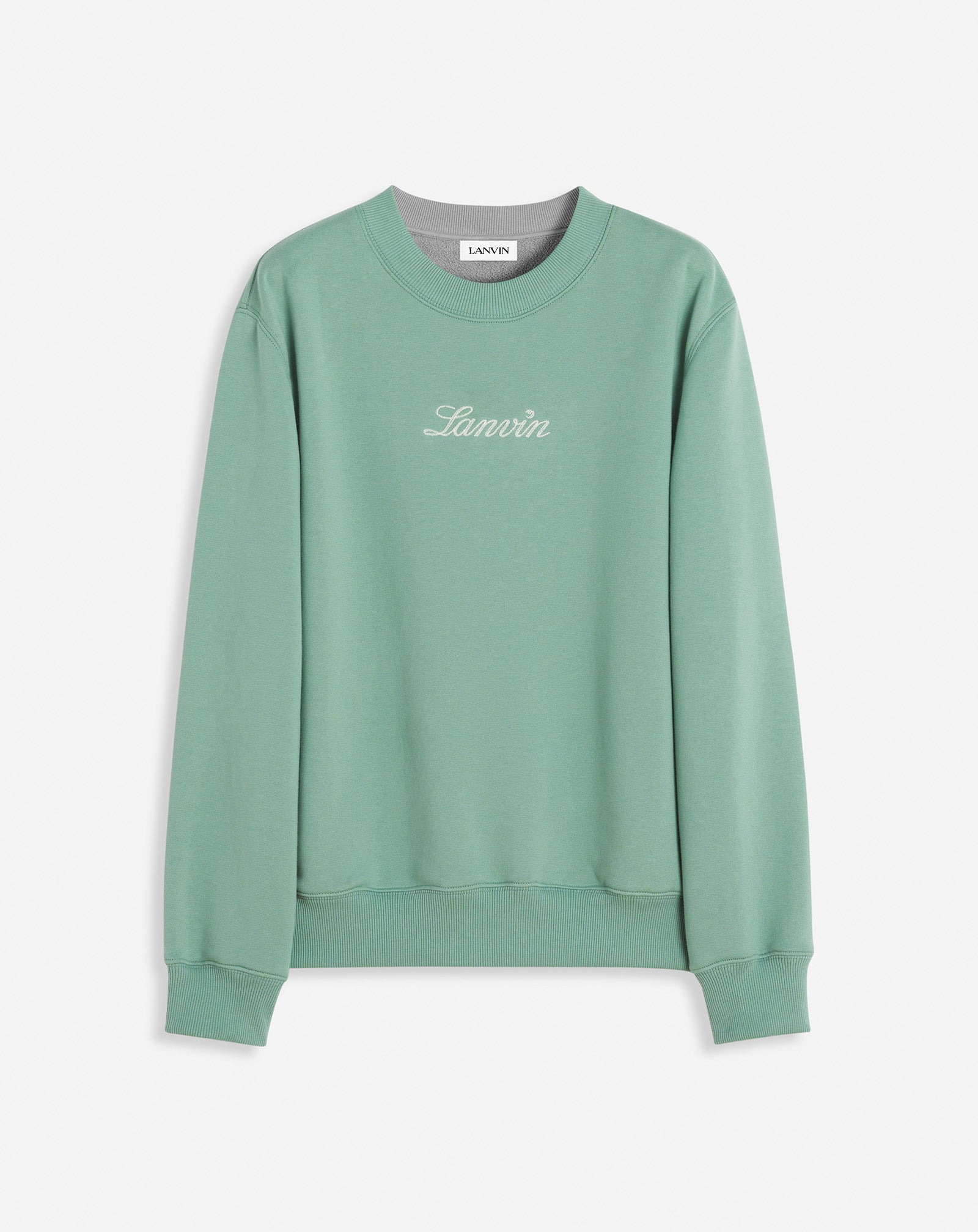 This sweatshirt features a handwritten Lanvin logo, a delicate symbol of the House's elegance. It's perfect for casual wear. Details - Lanvin embroidered sweatshirt - Straight fit - Round neck - Ribbed cuffs - Lanvin logo embroidered in contrasting thread - Made in Italy Size & fit - This style fits true to size, take your normal size - For more information, please see our size guide. Composition - Main fabric : 100% cotton knitted,100% polyester knitted SKU: RW-SS0006-J134-P25414XS