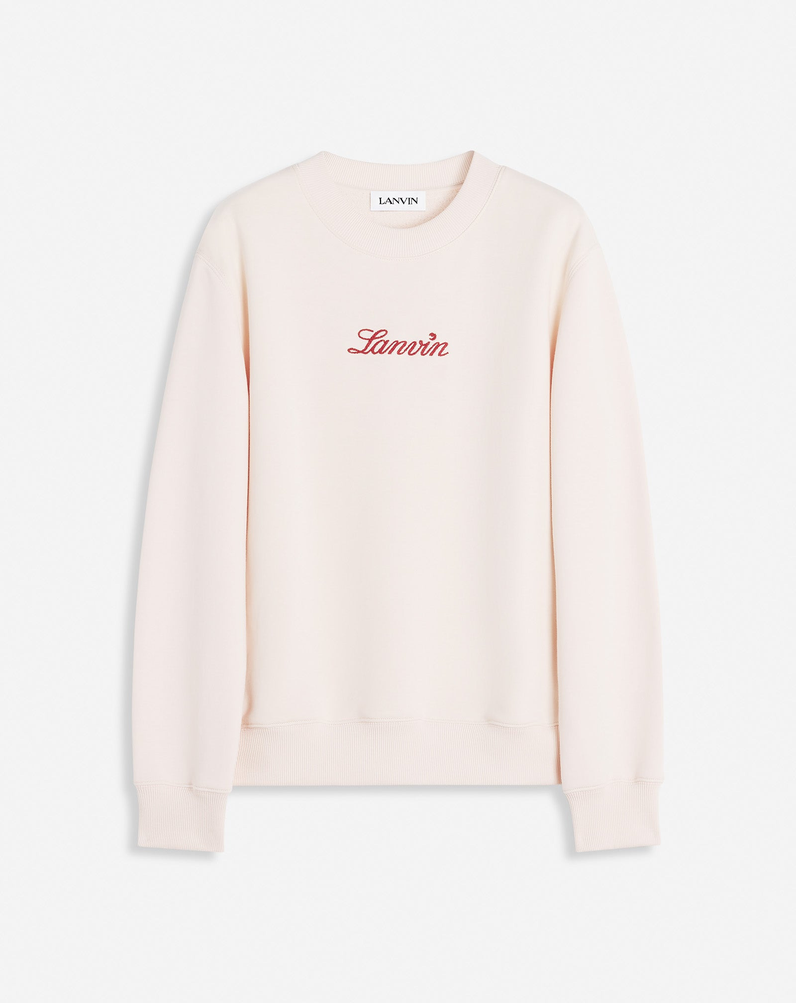 This sweatshirt features a handwritten Lanvin logo, a delicate symbol of the House's elegance. It's perfect for casual wear. Details - Lanvin embroidered sweatshirt - Straight fit - Round neck - Ribbed cuffs - Lanvin logo embroidered in contrasting thread - Made in Italy Size & fit - This style fits true to size, take your normal size - For more information, please see our size guide. Composition - Main fabric : 100% cotton knitted,100% polyester knitted SKU: RW-SS0006-J134-P25554XS