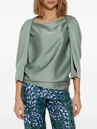 satin-finish blouse Highlights - Sage green - Rear button fastening - Square neck - Ruched detailing - Three-quarter length sleeves Made in Italy Composition Viscose 100%