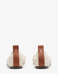 The 2023 Winter collection features the return of a Lanvin icon: the Ballerina Flat, a signature shoe of the House since the beginning of the 2000s. Combining elegance, simplicity and comfort, the essential Ballerina Flat is the perfect shoe for a “casual chic” look. Details - The round-toe Ballerina Flat in soft nappa lambskin leather. - 1 cm (0.39 inches) flat heel - Tone-on-tone leather tab on back with embossed Lanvin logo. - Lanvin label stitched on leather insole. - Made in Italy Size & fit - This style fits true to size, you may take your usual size. - The size displayed corresponds to a French size Composition - Upper: 90% lambskin, 10% calfskin - Lining: 80% calf skin, 20% goatskin - Sole: 100% cow leather SKU: FW-BAMB02-NAPA-P2405235