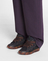 The Curb is a '90s-inspired sneaker with an assertive design and exaggerated volumes. Made from nappa calfskin, suede and mesh, this elaborately assembled model features ultimate comfort thanks to its round shape, padded tongue and metallic eyelets. Details - Curb leather sneakers - Almond toe - Double waxed and woven laces with a herringbone motif - Turtle shell effect painted sole - Quilted tongue with the Lanvin label and embossed Mother and Daughter logo - Made in Portugal Size & fit - This style fits true to size, you may take your usual size. - The size displayed corresponds to a French size Composition - Outer main material : 76% calf - bos taurus,24% polyester - Lining : 80% polyamide,20% elasterell-p tricote SKU: FW-SKDK02-TORT-A24646035