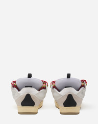 The Curb is a '90s-inspired sneaker with an assertive design and exaggerated volumes. Made from nappa calfskin, suede and mesh, this elaborately assembled model features ultimate comfort thanks to its round shape, padded tongue and metallic eyelets. Details - Curb leather sneakers - Almond toe - Waxed and woven double laces with a herringbone motif - Quilted tongue with the Lanvin label and an embossed Mother and Child logo - Made in Italy Size & fit - This style fits true to size, you may take your usual size. - The size displayed corresponds to a French size Composition - Outer main material : 82% polyester woven,18% elastane - Lining : 82% polyester woven,18% elastane - Sole : 100% rubber SKU: FU-SKDK12-DRA2-P250035