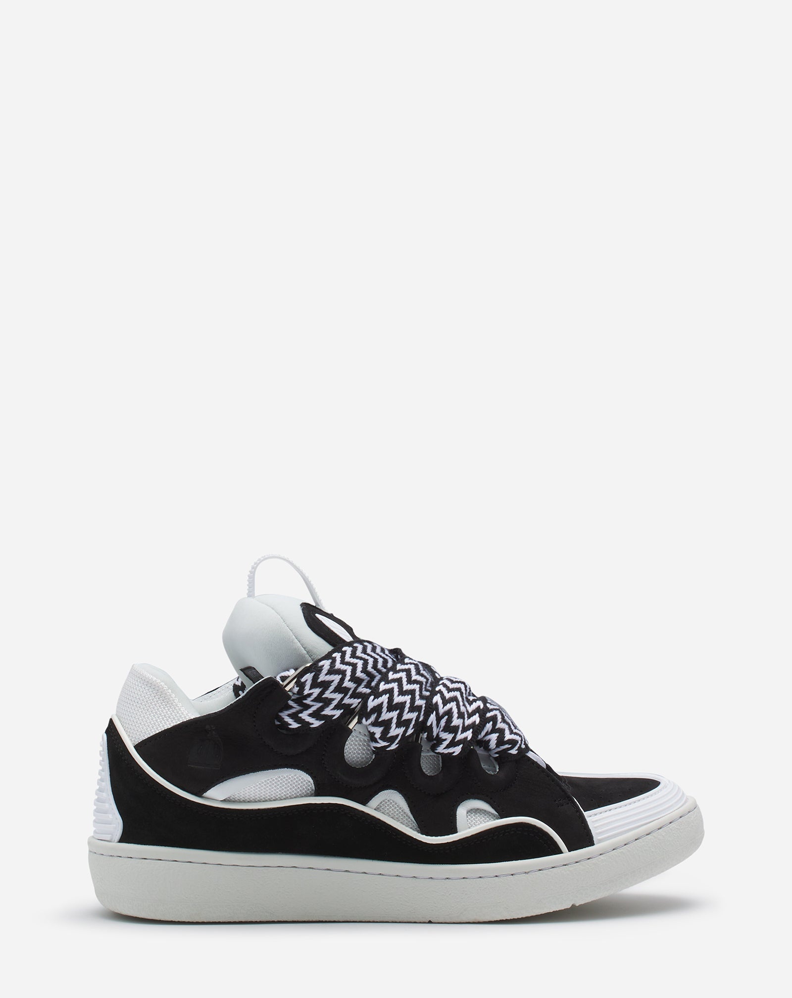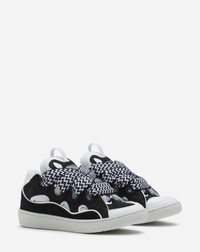 The Curb is a '90s-inspired sneaker with an assertive design and exaggerated volumes. Made from nappa calfskin, suede and mesh, this elaborately assembled model features ultimate comfort thanks to its round shape, padded tongue and metallic eyelets. Details - Curb leather sneakers - Almond toe - Waxed and woven double laces with a herringbone motif - Quilted tongue with the Lanvin label and an embossed Mother and Child logo - Made in Portugal Size & fit - This style fits true to size, you may take your usual size. - The size displayed corresponds to a French size SKU: FW-SKDK02-DRAG-A21100035