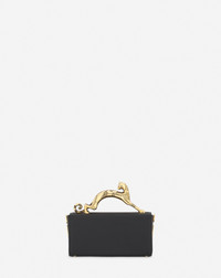 A unique collector's Lanvin bag, the Pencil Cat is embellished with a precious sculptural handle, inspired by an andiron belonging to Jeanne Lanvin designed by the French designer Armand-Albert Rateau. Details - Pencil Cat bag in matte leather - Color: Black - Made in Italy Size and fit - L x H x W: 19 x 9 x 6 cm (7.5 x 3.5 x 2.4 in.) - Can be carried on the shoulder or in the hand - Handle: Lightweight electro-formed cat-shaped jewelry handle - Dual galvanized gold and palladium fastening - Removable shoulder strap with two metal hooks and an adjustable buckle - Decorative metal elements on the side - Inside patch pocket Composition - Main material: calfskin - Secondary material: brass - Material 3: zamak - Lining: calfskin Cleaning and care - Gently rub the leather with a damp cloth and a dab of suitable moisturizer. Wipe gently with a soft, dry cloth. - Gently clean the handle using a clean, soft cloth. Avoid using cosmetic, chemical or abrasive products. - Store in a dry, dark place in its original packaging. SKU: LW-BGBR03-TOPS-E2310U